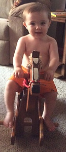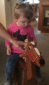 Tati riding the horse with help at almost one, almost two, and then again at almost 5 years old.